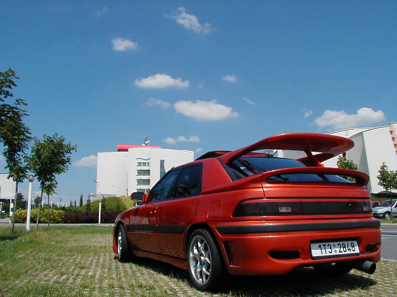 „Poté jsem instaloval prahy, přední a zadní nárazník ZENDER. Spodní část předního nárazníku byla doladěna ze Škody Octavia a na zadním nárazníku jsem vyřezal na obou stranách výdech. Spoiler byl připasován z Fordu Escort RS Cosworth.